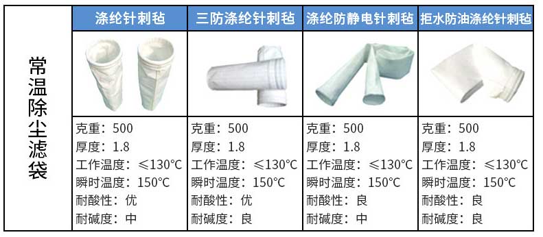 三防針刺氈除塵布袋的三防即為“防水、防油、防靜電”,即在防靜電針刺氈的基礎(chǔ)上增加“撥水、撥油”功能,適用于含濕量較大的場合,還具有耐磨、耐高溫、防腐蝕、耐折的優(yōu)點。并有適合不同溫度段的系列不同的除塵濾袋如鋼鐵廠高爐噴煤粉、水泥廠、電廠輸煤系統(tǒng)等。