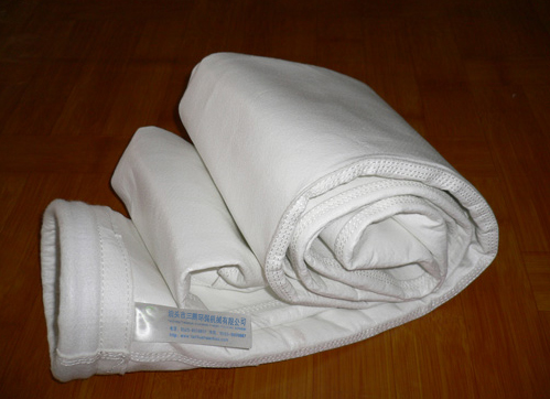 滌綸針刺氈是布袋除塵器中比較常用的濾料,一般采用非織造針刺工藝,將滌綸短纖維梳理鋪網(wǎng)在交錯排列、空隙分布均勻的細纖維布上后針刺成氈。此濾料強度大、彈性回復(fù)性能好、織物尺寸穩(wěn)定、耐磨性能好、空隙率大,透氣性能較好,使用壽命長,除塵效果好,低溫下有良好的力學(xué)性能和耐酸堿性。由于滌綸價格低廉,因此滌綸針刺氈也是低溫下O劃算的過濾介質(zhì)。